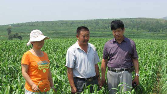 上图为辽宁省水土保持研究所谷子种植专家张主任到到贾家店谷子全程机械化示范区进行现场视察指导